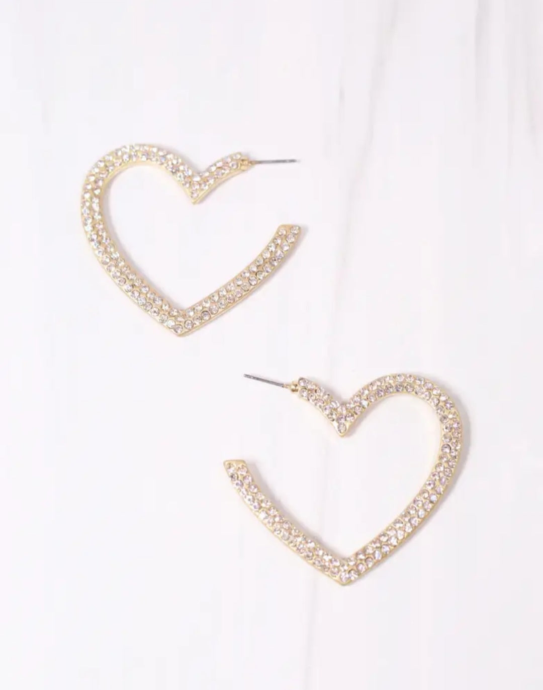 This metal heart hoop earring is lined with CZs for a sparkly Valentine's day look. Dimensions: 1.75"