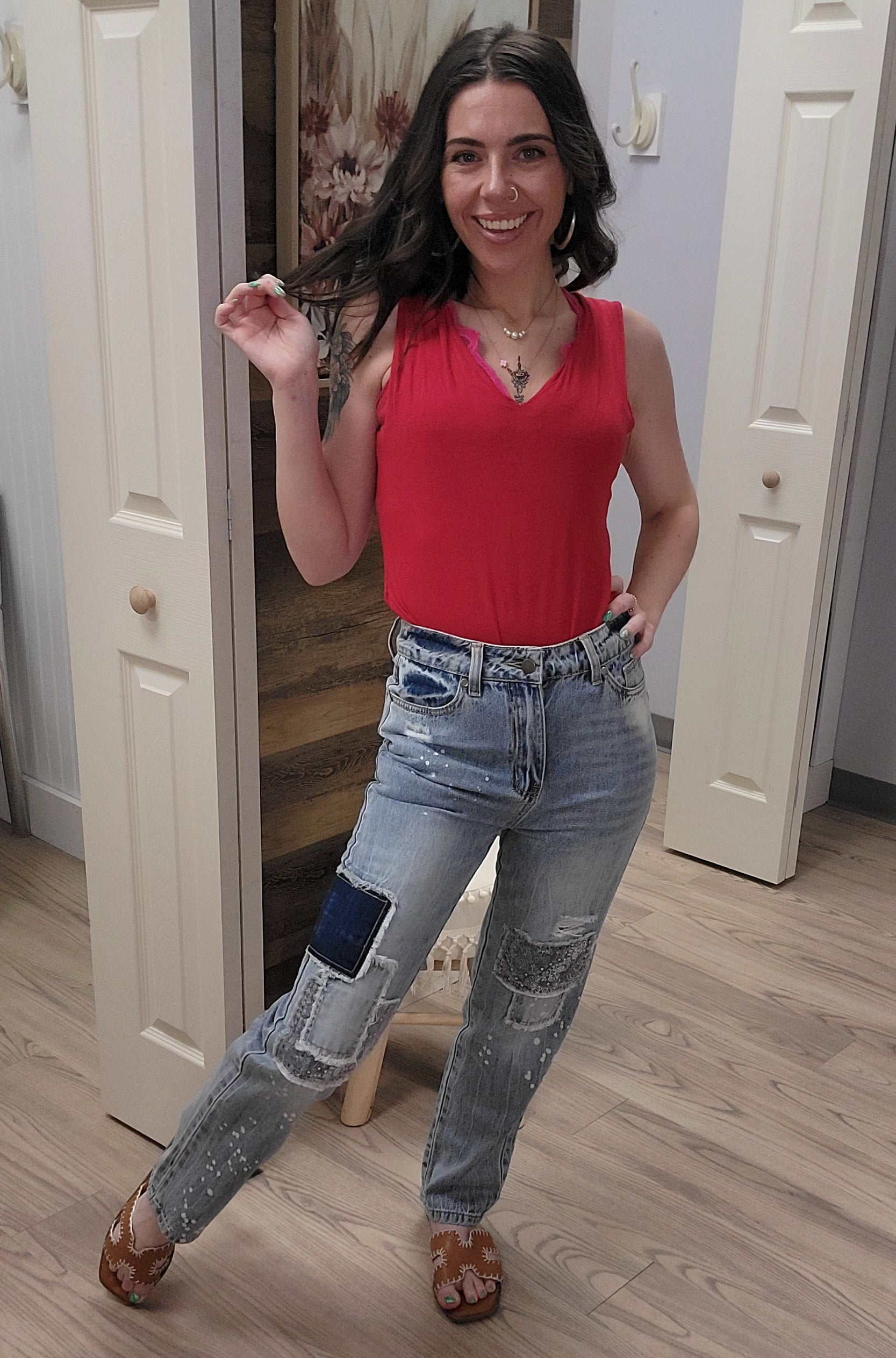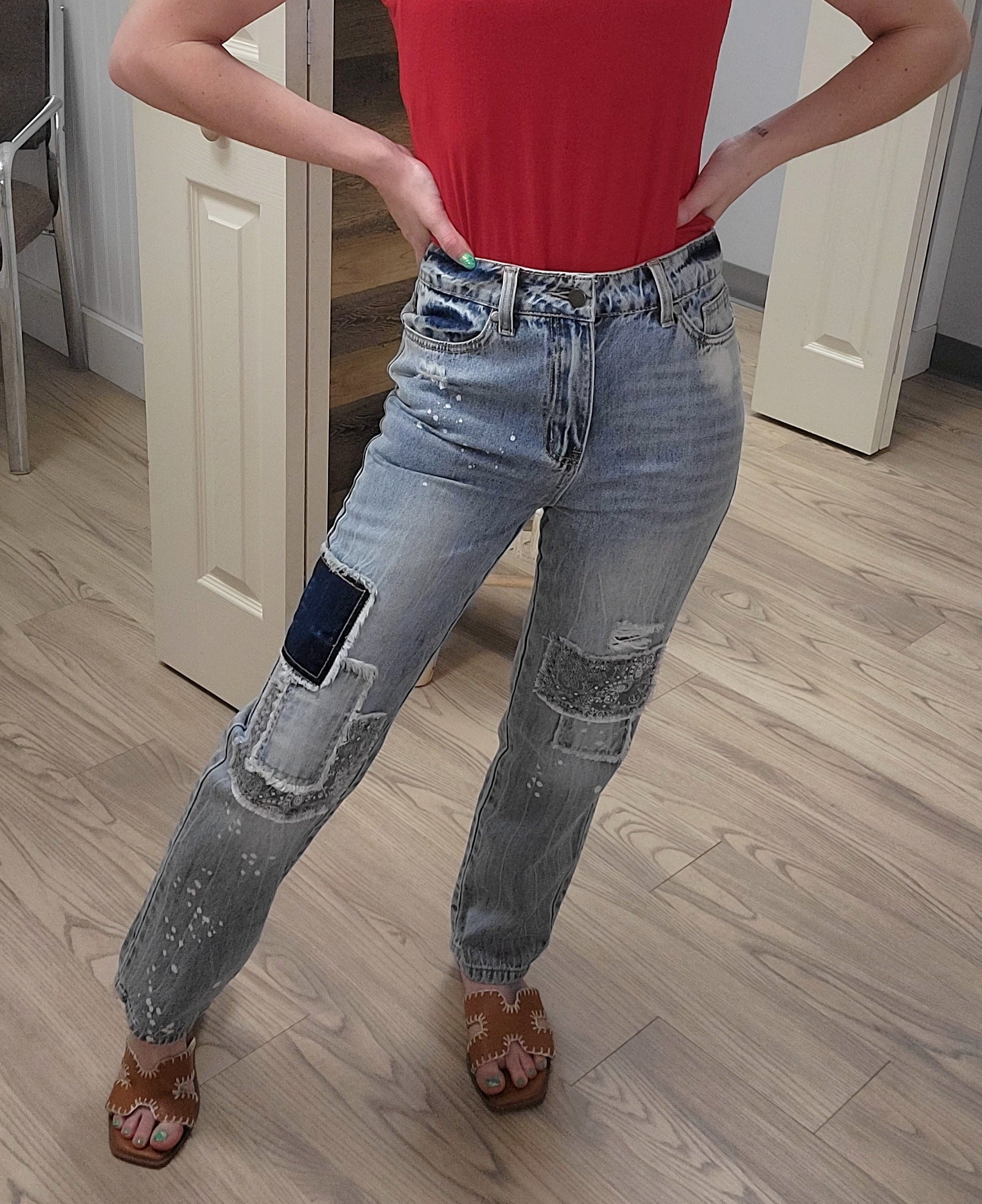 Update your wardrobe with our Denim Patchwork Jeans. Made with a high-rise fit and unique patchwork detailing, these jeans will give you a stylish, boho vibe. With a true to size fit, you'll feel confident and comfortable all day long. Elevate your fashion game with these must-have jeans.