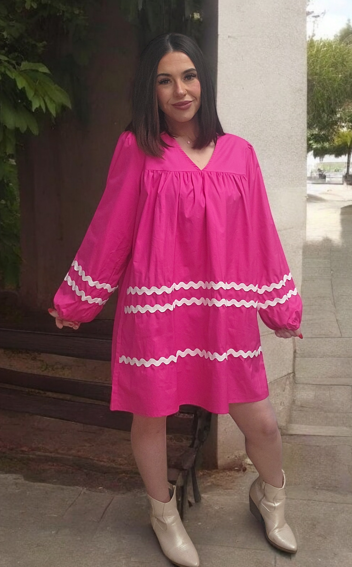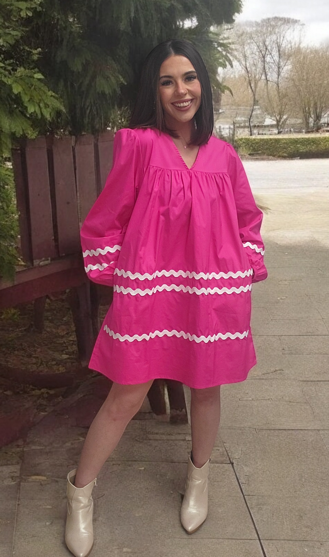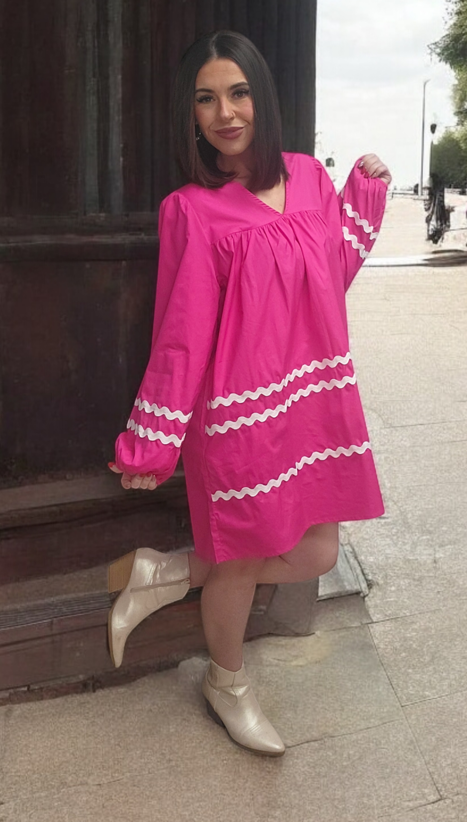Introducing the Girl Like Me Dress - crafted in breezy 100% cotton for all-day comfort. With charming ric rac detailing and convenient functional pockets, this dress effortlessly combines style and functionality. The flowy fit adds a touch of femininity, making it a perfect choice for any occasion.