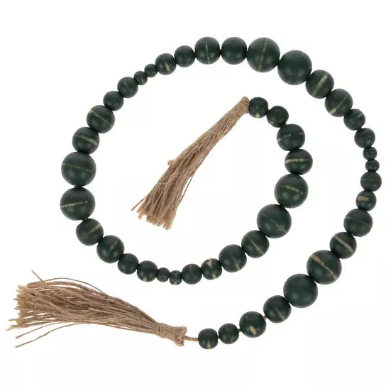 Decorate your home with vintage elements like this Green Beaded Garland With Tassels. This long garland is decorated with green beads of different sizes strung along a piece of rope. At the end of this rope, there are long tassels to tie the boho look together in aesthetic style. Lay this garland between your other decor on the coffee table to tie the room together!