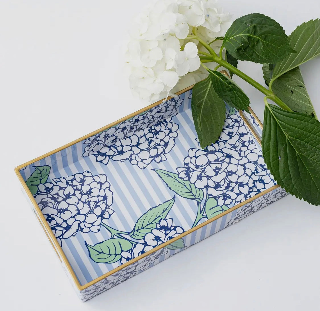 Introducing the Hydrangea Stem Vanity Tray, where chic convenience meets sophisticated style. An elegant way to display small home goods while entertaining friends & family, this luxury tray is designed to turn every gathering into a special occasion. Crafted of resin with functional side handles that make transport a breeze, it boasts an eye-catching hydrangea floral pattern to add texture & beauty to any event. From poolside parties to indoor get-togethers, bring your signature charm & wow factor with the Hydrangea Stem Vanity Tray. Sleek, stylish, & effortlessly practical, it’s the perfect finishing touch for all your celebrations. Resin 11.25" x 6.5" x 1.25" Spot Clean Recommended