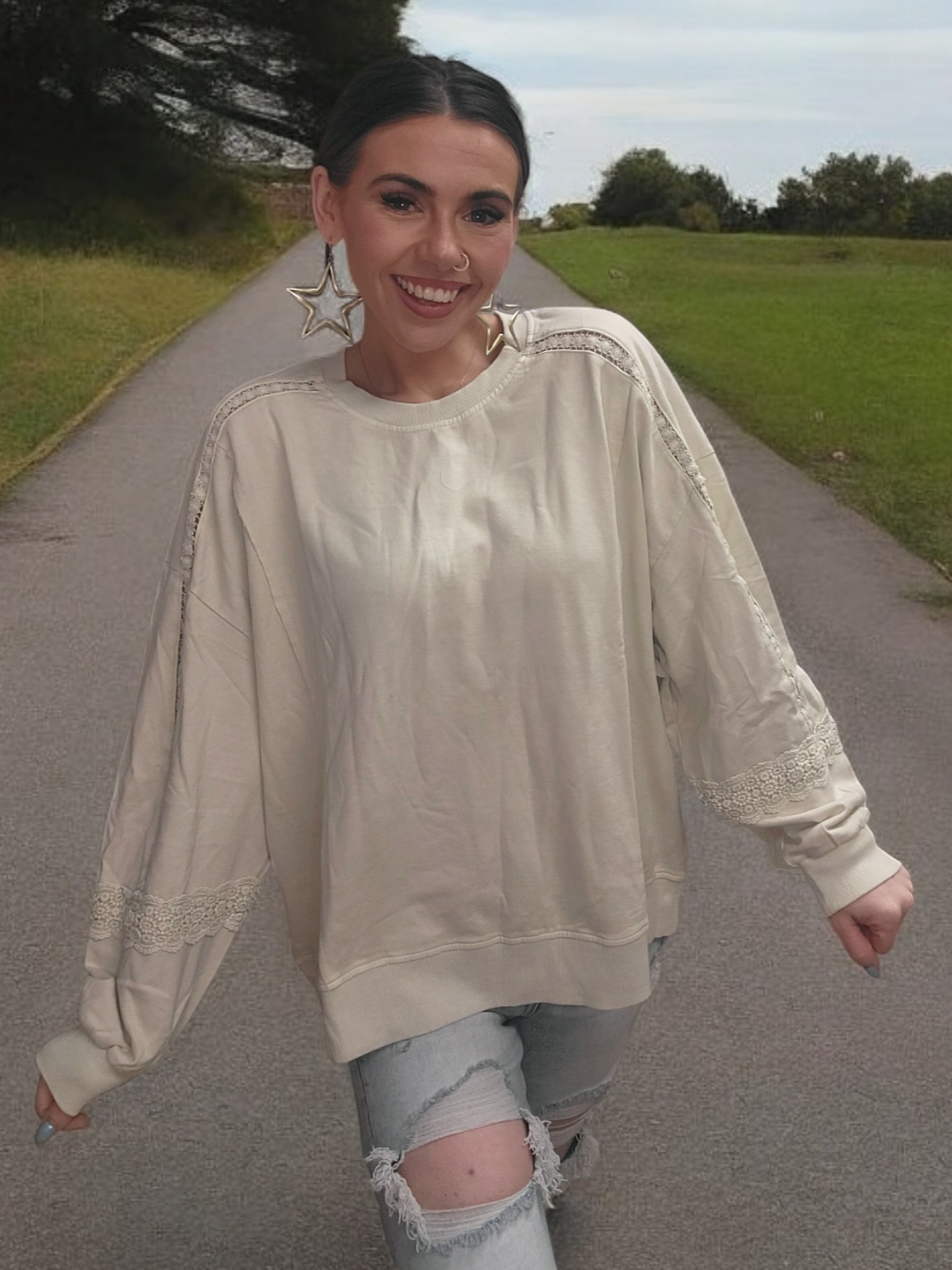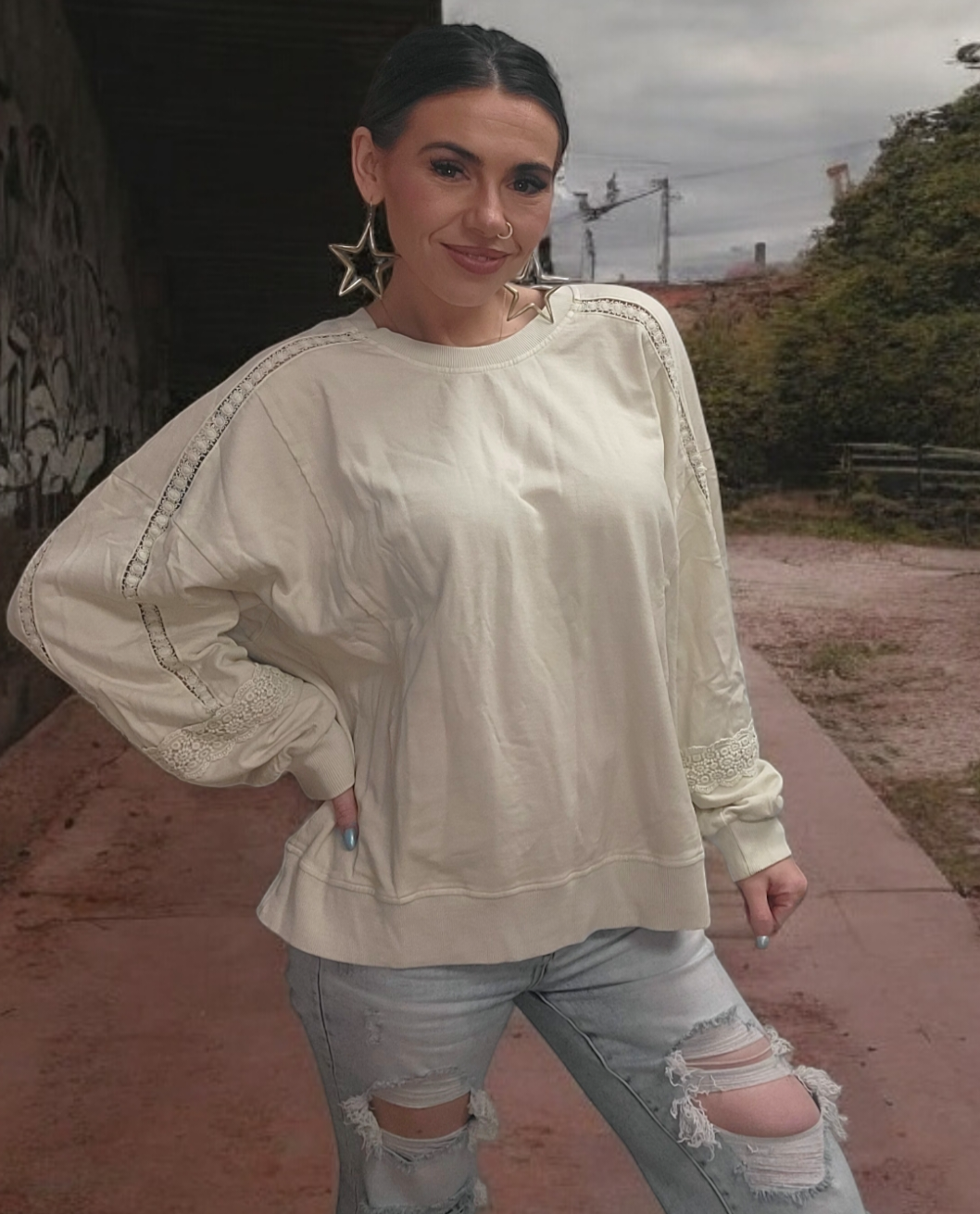 "The In the Details Top features a beautiful neutral color that complements any outfit. Its crochet lace detailing adds texture and elegance, while the raw cut and seams provide a relaxed fit for maximum comfort. Made from 100% cotton material, this top is both stylish and breathable. Perfect for any occasion."