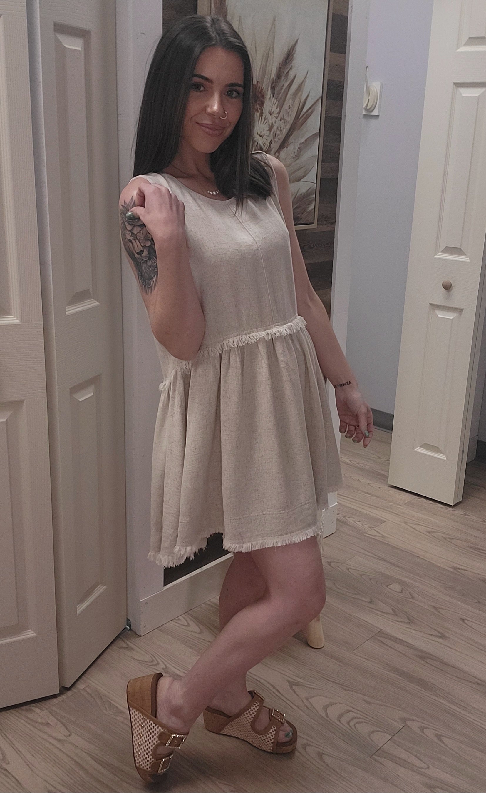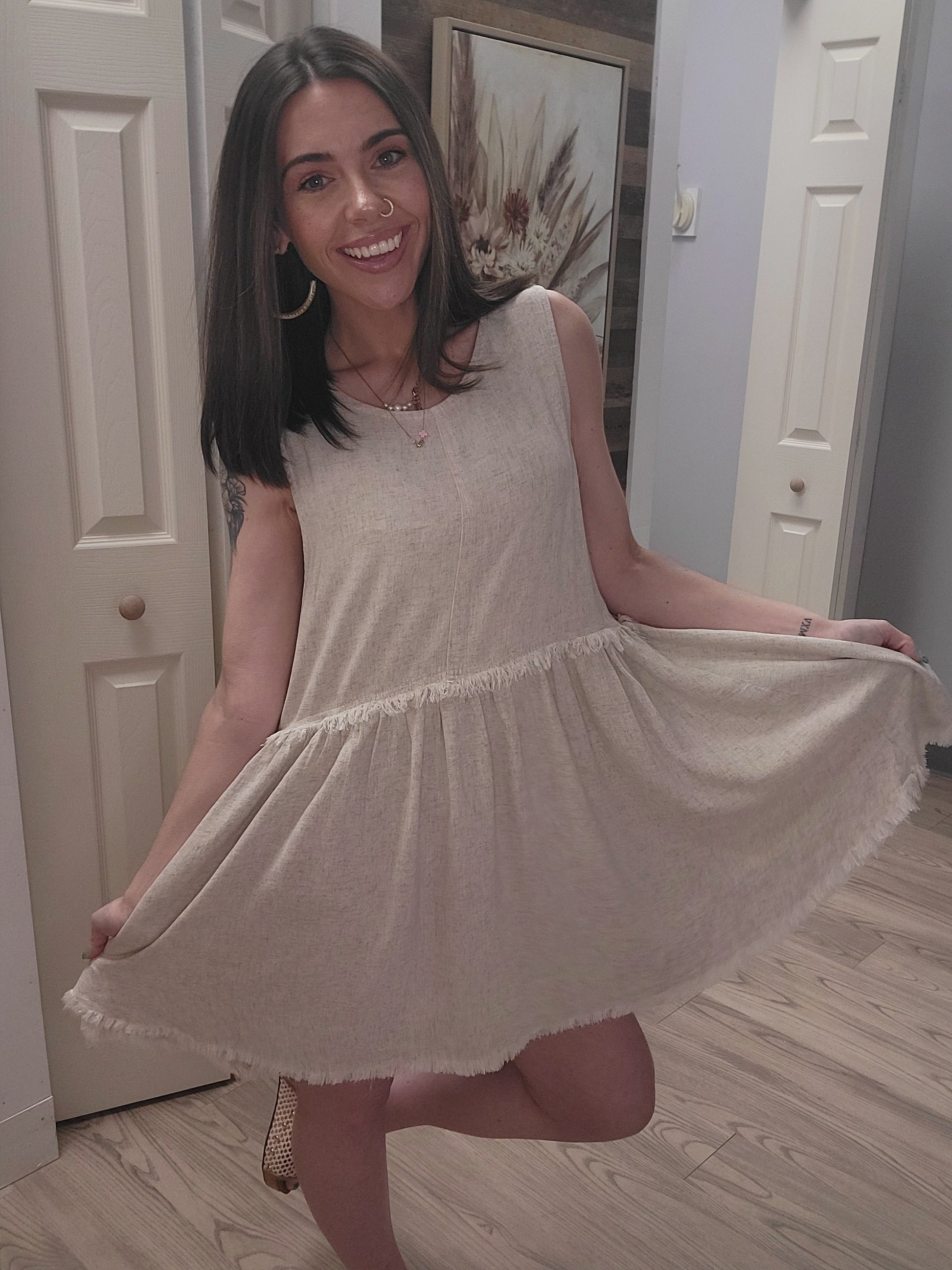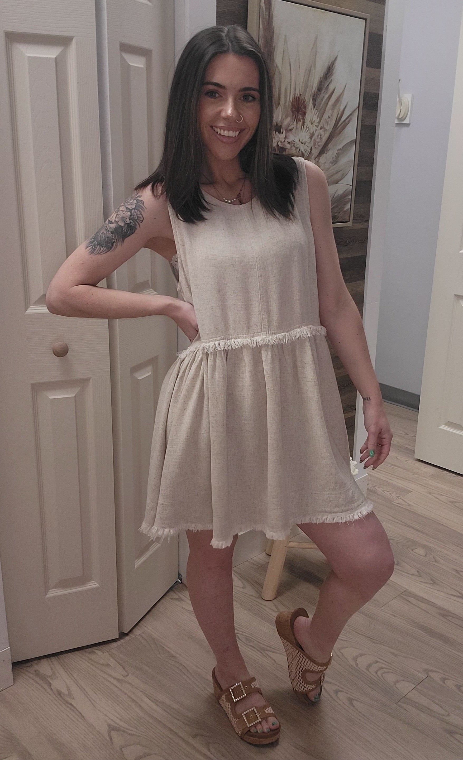 Expertly crafted from high quality linen [55%] & 45% cotton, the Made You Look Dress offers a flowy, comfortable fit. With delicate frayed detailing and a true to size fit, this dress is perfect for any occasion. Experience a touch of elegance and sophistication with this must-have wardrobe staple.