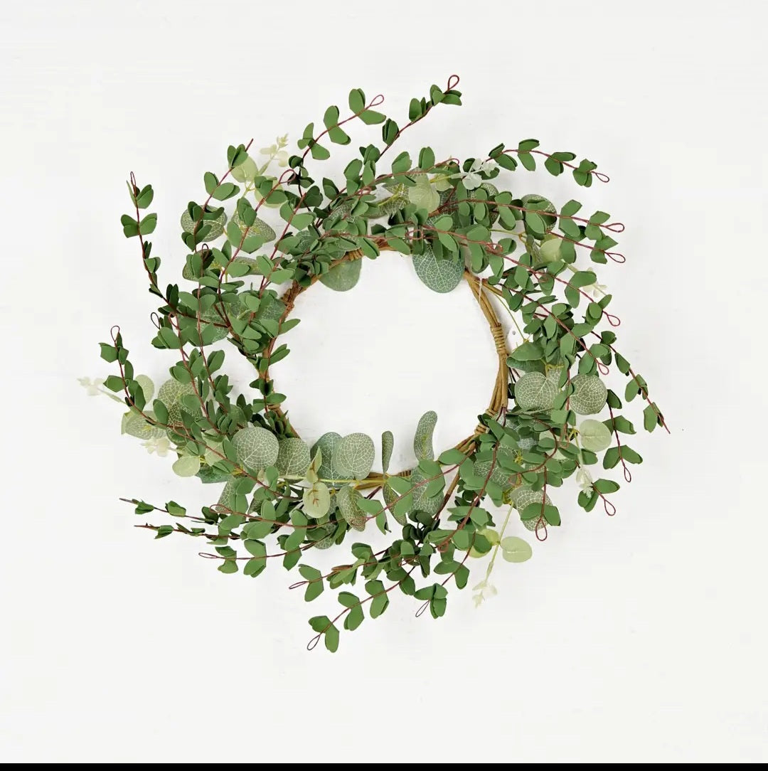 18in(6.5) Wreath-Mixed Eucalyptus-6/48pcs Spring and everyday mix evergreen eucalyptus flower wreath