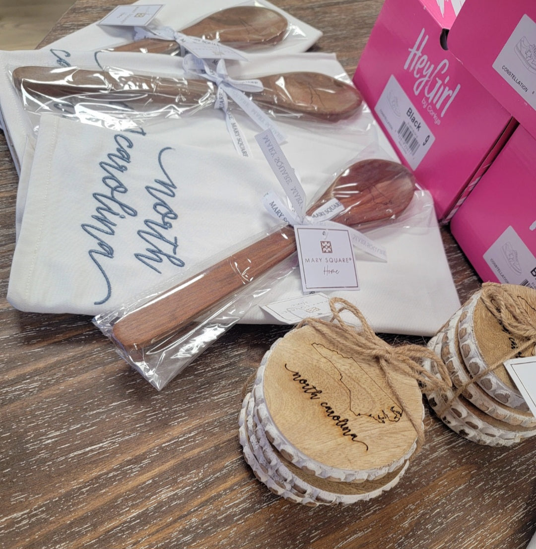 Protect and add a touch of rustic charm to your table with our NC Wood Coasters. Each set includes four coasters with a beautiful white wash beaded detail. Featuring the picturesque North Carolina state, these coasters are perfect for any home or as a unique gift for a fellow North Carolina lover. Made with high quality wood, these coasters will last for years to come.