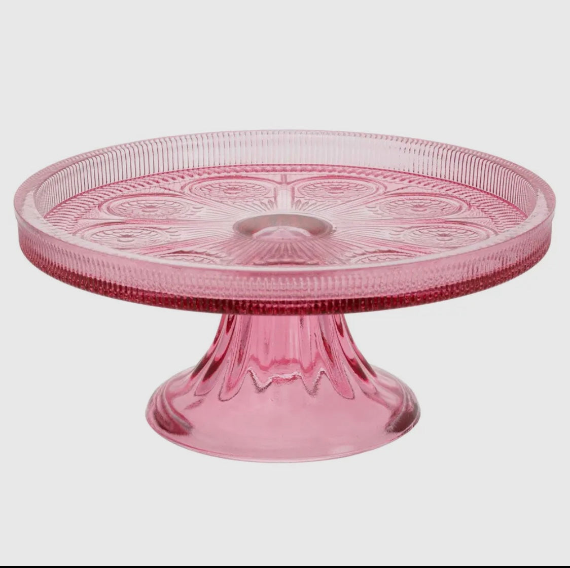 8.25" Dia Pink Codi Glass Cake Stand, 8.25" Dia x 3.5" H