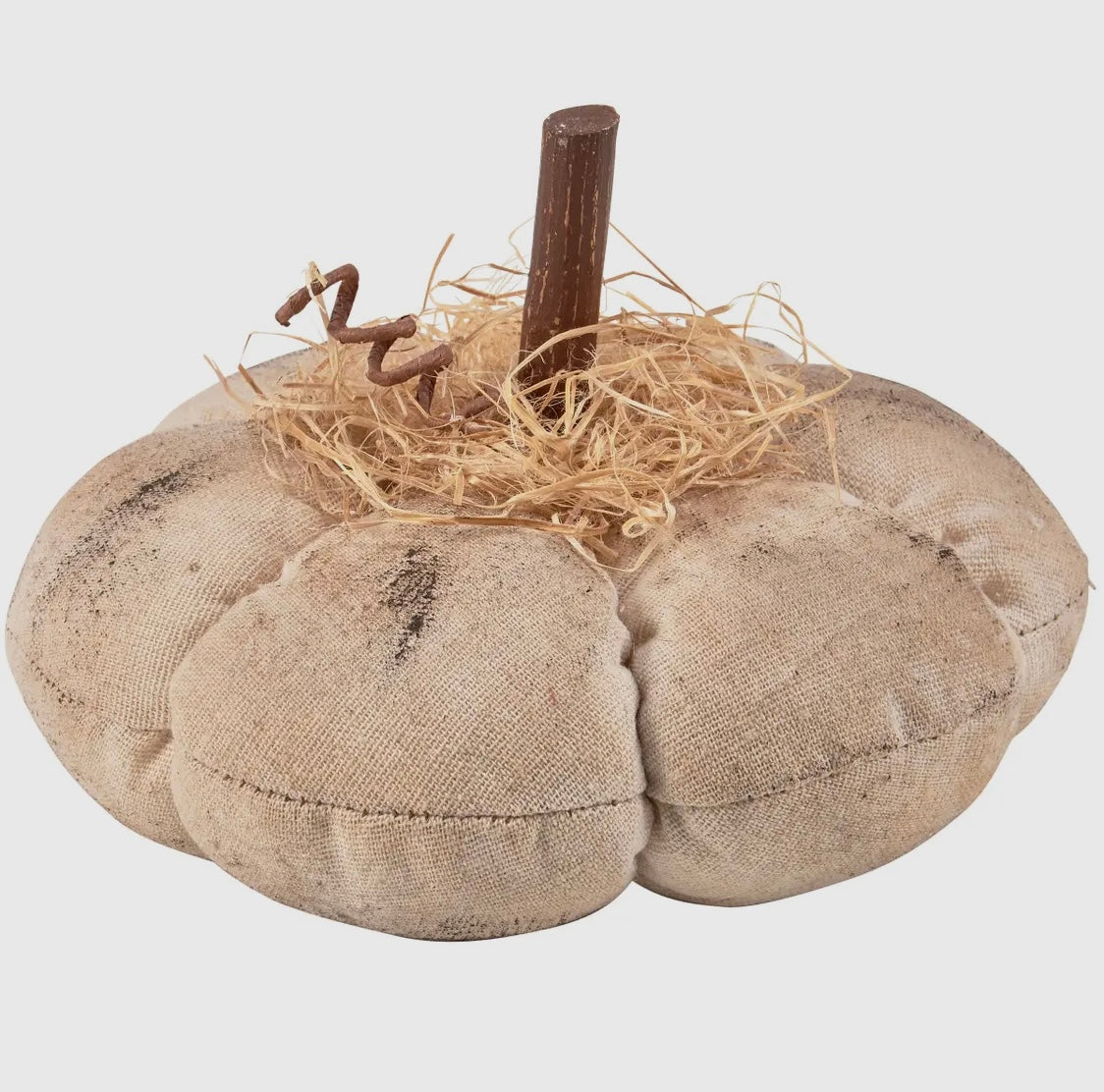 A decorative pumpkin from our Fall & Harvest Collection featuring a primitive inspired design using fabric and natural wood. Our Primitive Cream pumpkin is designed to free-stand on any flat surface. Place in a display to add a touch of autumn or with other decorative pumpkins as a collection. A rustic seasonal home accent with a variety of display options.