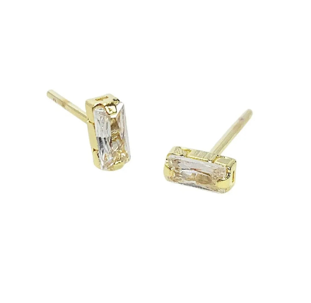 Handmade in Brazil.  These sparkling baguette cubic zirconia studs will add an alluring touch to your collection.  Simplicity is perfection!  5mm in length