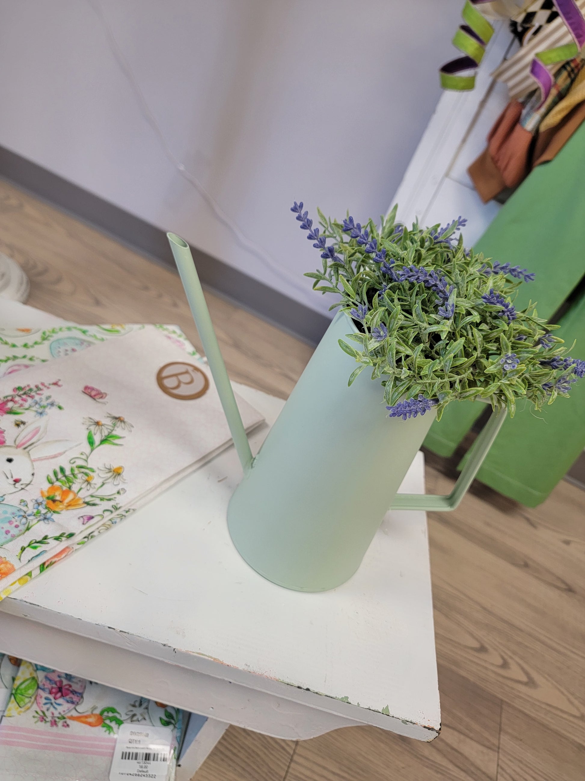 8.25" Sage Metal Watering Can, 10" L x 4.75" W x 8.25" H -- Colors: Sage green Theme: Tranquil and minimalist garden accessory. This sleek and elegant sage-colored metal watering can is perfect for bringing a touch of serene beauty to your gardening routine. Its simple and refined design not only serves its functional purpose but also adds a charming aesthetic to any garden space.