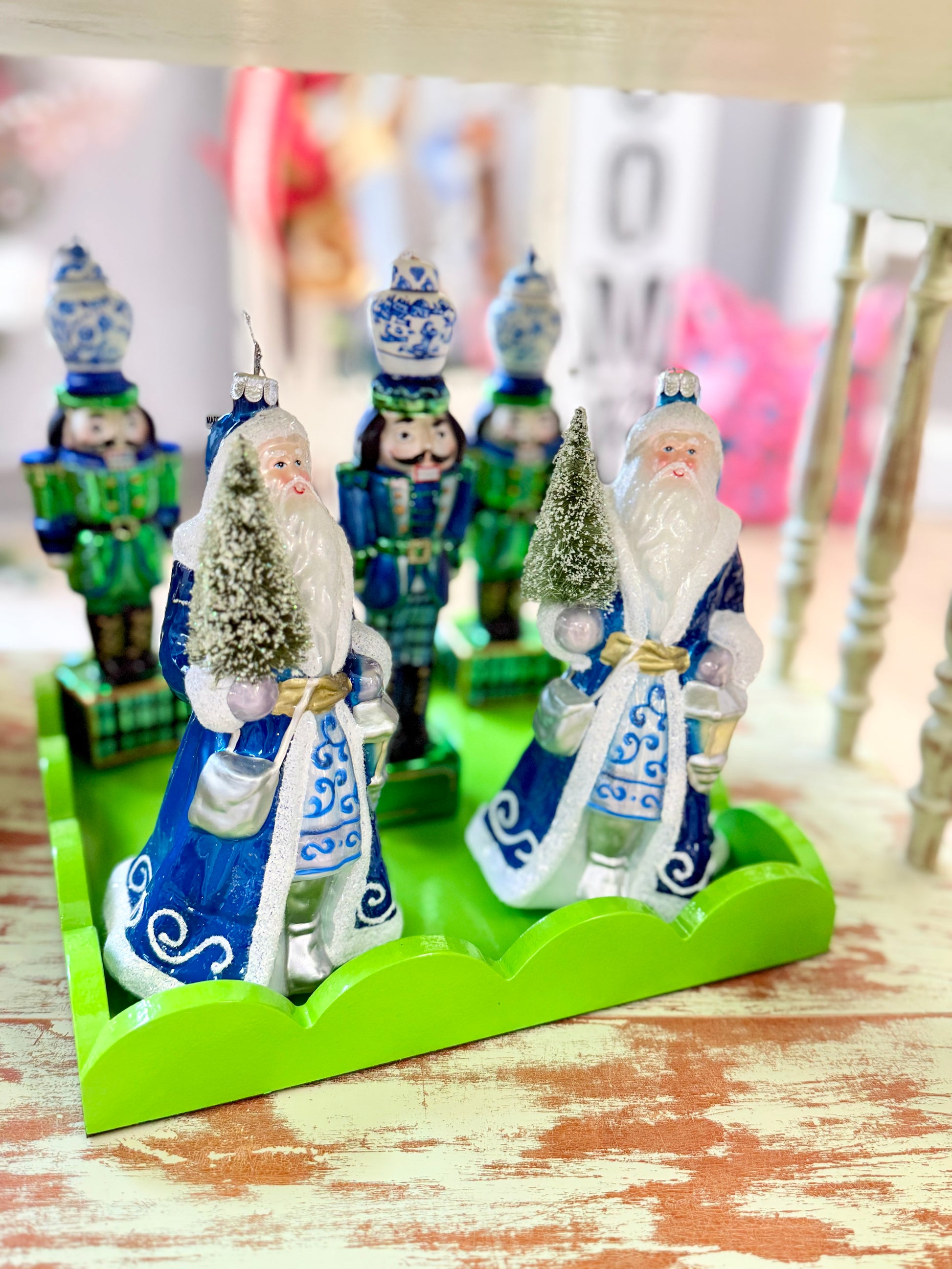 Add a touch of festive cheer to your holiday decor with this charming Santa with Tree ornament. Crafted from a combination of glass and plastic, this ornament features a jolly Santa Claus holding a beautifully decorated Christmas tree. Measuring 4" in length, 3.5" in width, and 7" in height, this ornament is the perfect size to hang on your tree or display on a mantel or shelf.