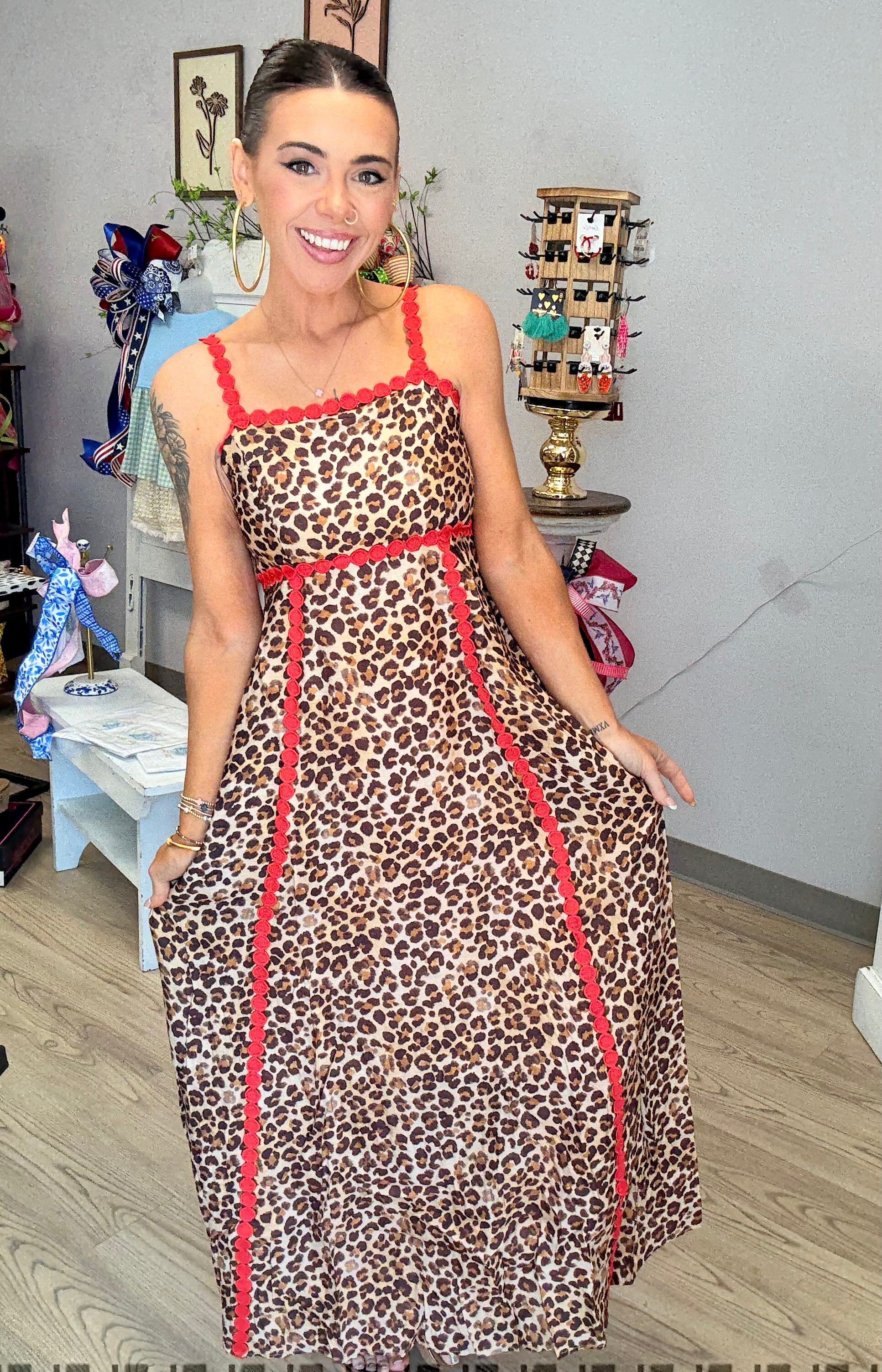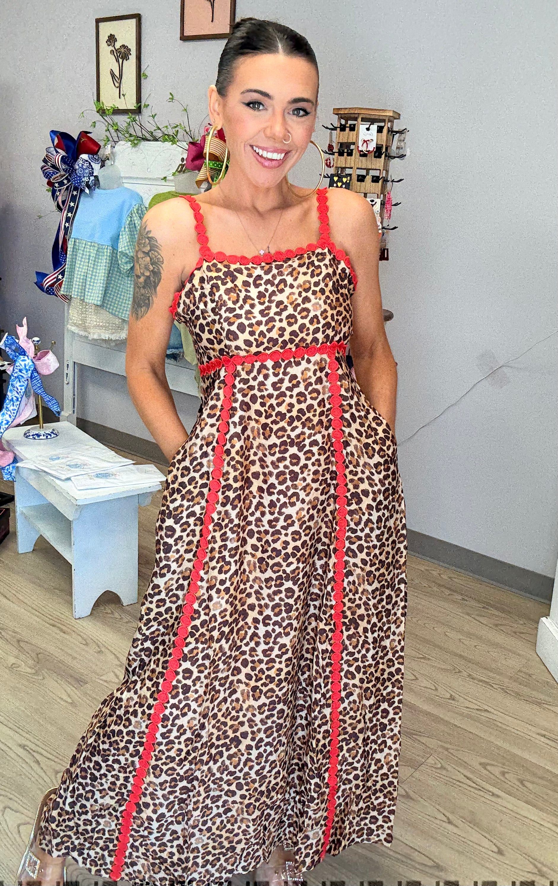 This fully lined "She's A Wild One Dress" is a must-have for any fashion-forward wardrobe. Featuring functional pockets and ric-rac detailing, this dress is both stylish and practical. With adjustable straps and a true-to-size fit, you'll love the comfort and versatility of this dress. Made with a high-quality blend of 80% Rayon and 20% Nylon, this dress is durable and will hold its shape wear after wear.