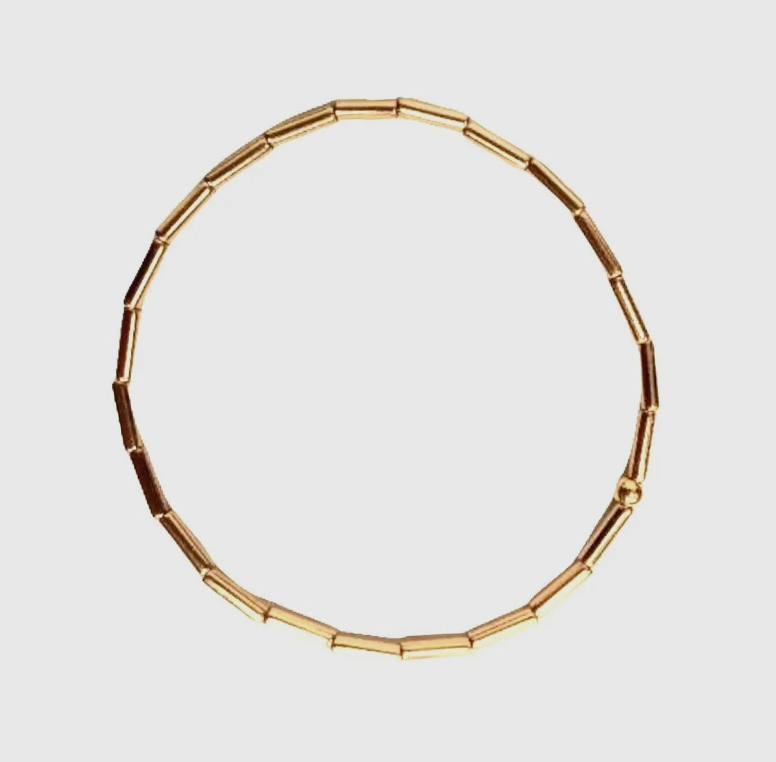 Handmade in Brazil.  This Small Tubes Elastic Bracelet will be one of your favorite stacking pieces to wear.  Made with durable elastic for ease of taking on and off.  Mix, match and stack for a fashionable statement!