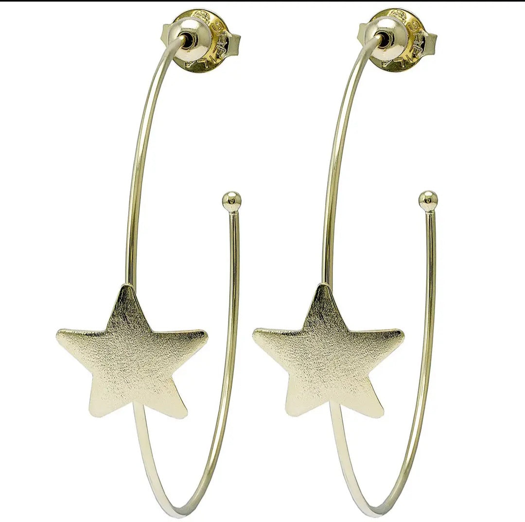 Handmade in Brazil. Be the star of the show in these delicate, thin wire hoops embellished with one central star! Approximately 2 1/4"in diameter