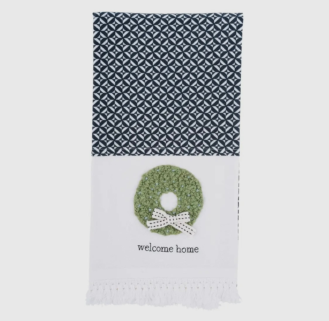 Add a welcoming touch to your kitchen with the Welcome Home Wreath Tea Towel. Featuring a beautifully designed wreath and the heartfelt message "Welcome Home," this towel brings warmth and charm to any space. Made from soft, absorbent cotton, it’s perfect for drying dishes, wiping hands, or as a lovely addition to your home decor. * Original Design * Dimensions: 19" x 25" * Machine wash cold. In gentle cycle. Do not bleach. Line dry or tumble dry no heat. Do not iron directly on design.
