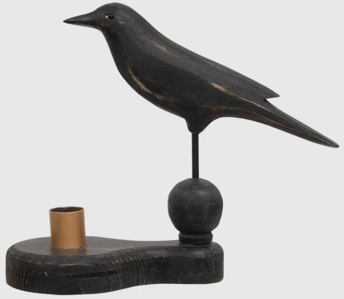 Wooden Crow Pedestal with Taper Holder
